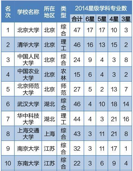 2014中國大學(xué)學(xué)科專業(yè)排行榜100強(qiáng)出爐