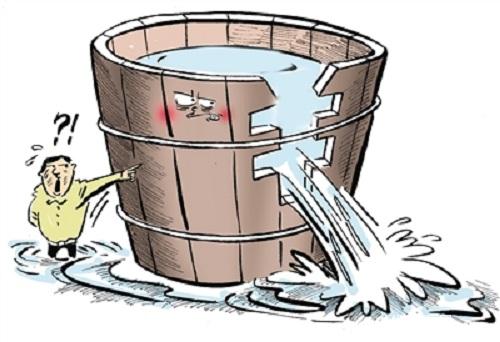 木桶定律是講一只水桶能裝多少水,這完全取決于它最短的那塊木板。這就是說任何一個組織,可能面臨的一個共同問題,即構成組織的各個部分往往是優(yōu)劣不齊的,而劣勢部分往往決定整個組織的水平。水桶定律與酒與污水定律不同,后者討論的是組織中的破壞力量,最短的木板卻是組織中有用的一個部分,只不過比其他部分差一些,你不能把它們當成糟糕的而扔掉。強弱只是相對而言的,無法消除,問題在于你容忍這種弱點到什么程度,如果嚴重到成為阻礙工作的瓶頸,你就不得不有所動作。