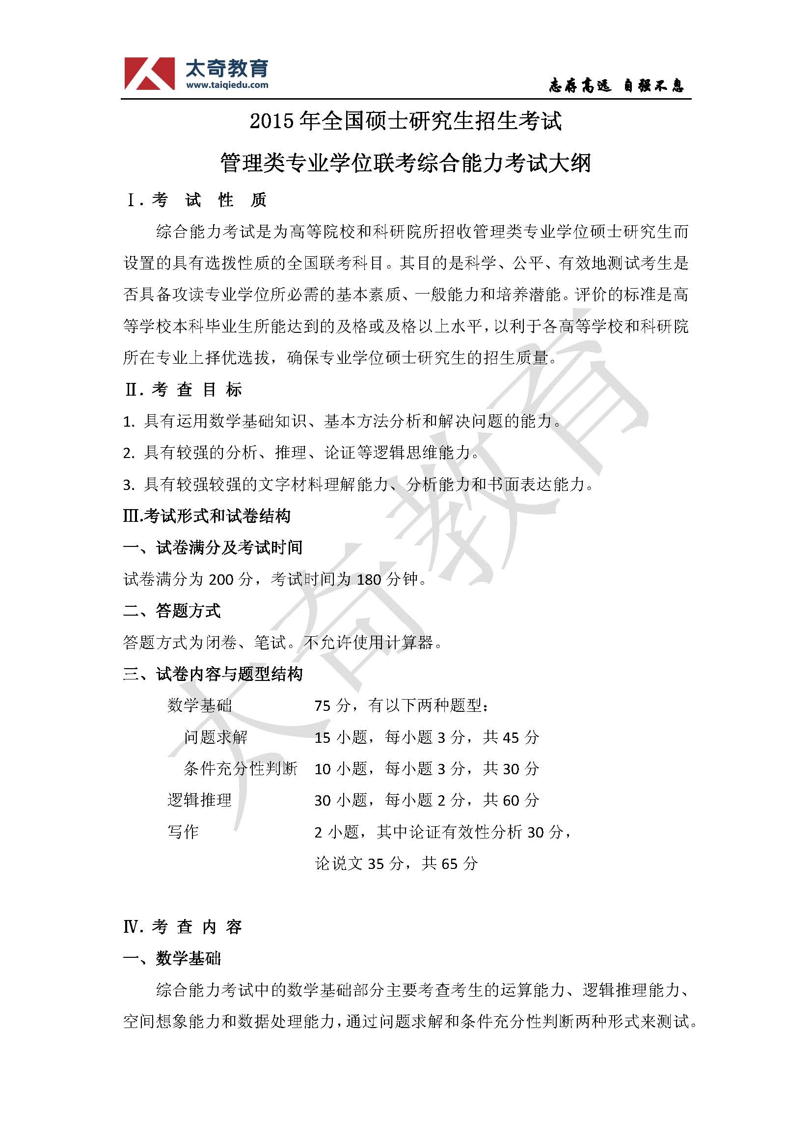 2015年管理類聯(lián)考考試大綱-太奇首發(fā)