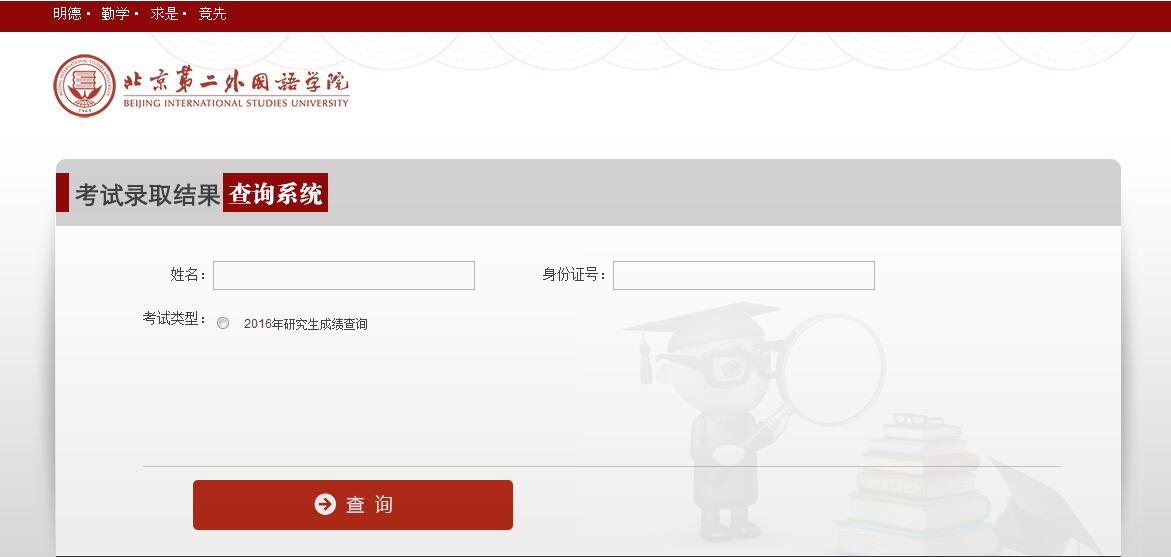 北京第二外國語學(xué)院2016年MBA/MPA/MPAcc成績查詢已公布,考生可以點(diǎn)擊下面鏈接進(jìn)行成績查詢。
