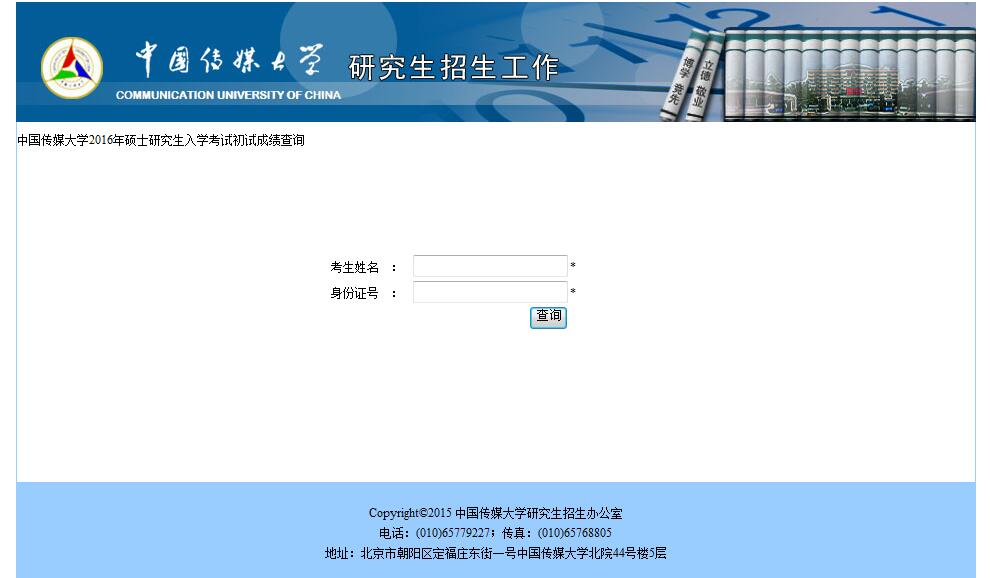 一、2016年中國(guó)傳媒大學(xué)碩士研究生入學(xué)考試初試成績(jī)查詢系統(tǒng)已開通