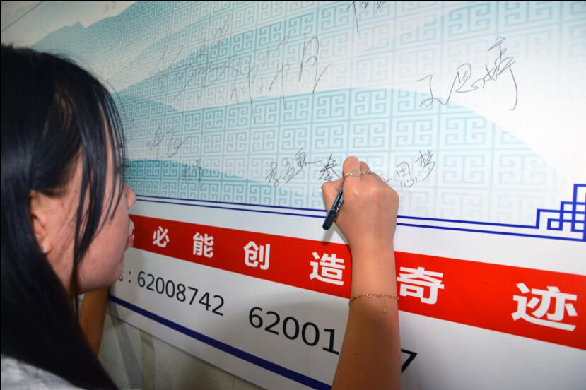 考生將目標和心愿寫在留言板上并簽名立志