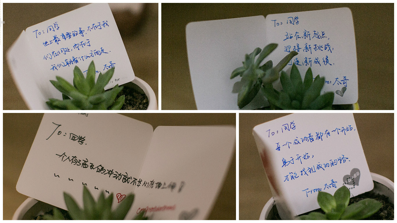 細心的同學(xué)們可能看到還沒有搬進學(xué)員的空宿舍里桌子上都擺著一盆小多肉,這其實是我們隨“床”贈送的小禮物,走近看更是有手寫卡片放在上面,滿滿的期望和愛意,太奇人小到細節(jié)的關(guān)心著學(xué)員的學(xué)習(xí)和生活。