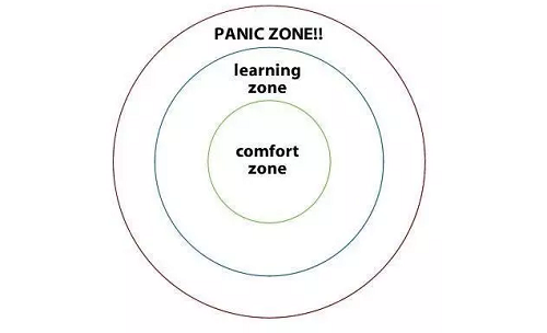 最外面一圈,“恐慌區(qū)”,超出自己能力范圍太多的事務(wù)或知識(shí),心理感覺會(huì)嚴(yán)重不適,可能導(dǎo)致崩潰以致放棄學(xué)習(xí)。