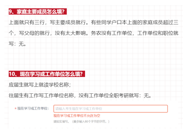 問的最多的就是往屆生,記住,今年7月份以前畢業(yè)的就算是往屆生,不要選5(普通全日制應(yīng)屆本科生),按照自己的身份,選擇相應(yīng)的:科研人員、高等教育教師、中等教育教師、其他在職人員、成人應(yīng)屆本科畢業(yè)生、其他人員。大多數(shù)往屆生沒有工作全職備考,那么就選7(其他人員),如果有工作,就選4(其他在職人員)。目前還在讀的本科生,考生來源選擇5(普通全日制應(yīng)屆本科畢業(yè)生)。