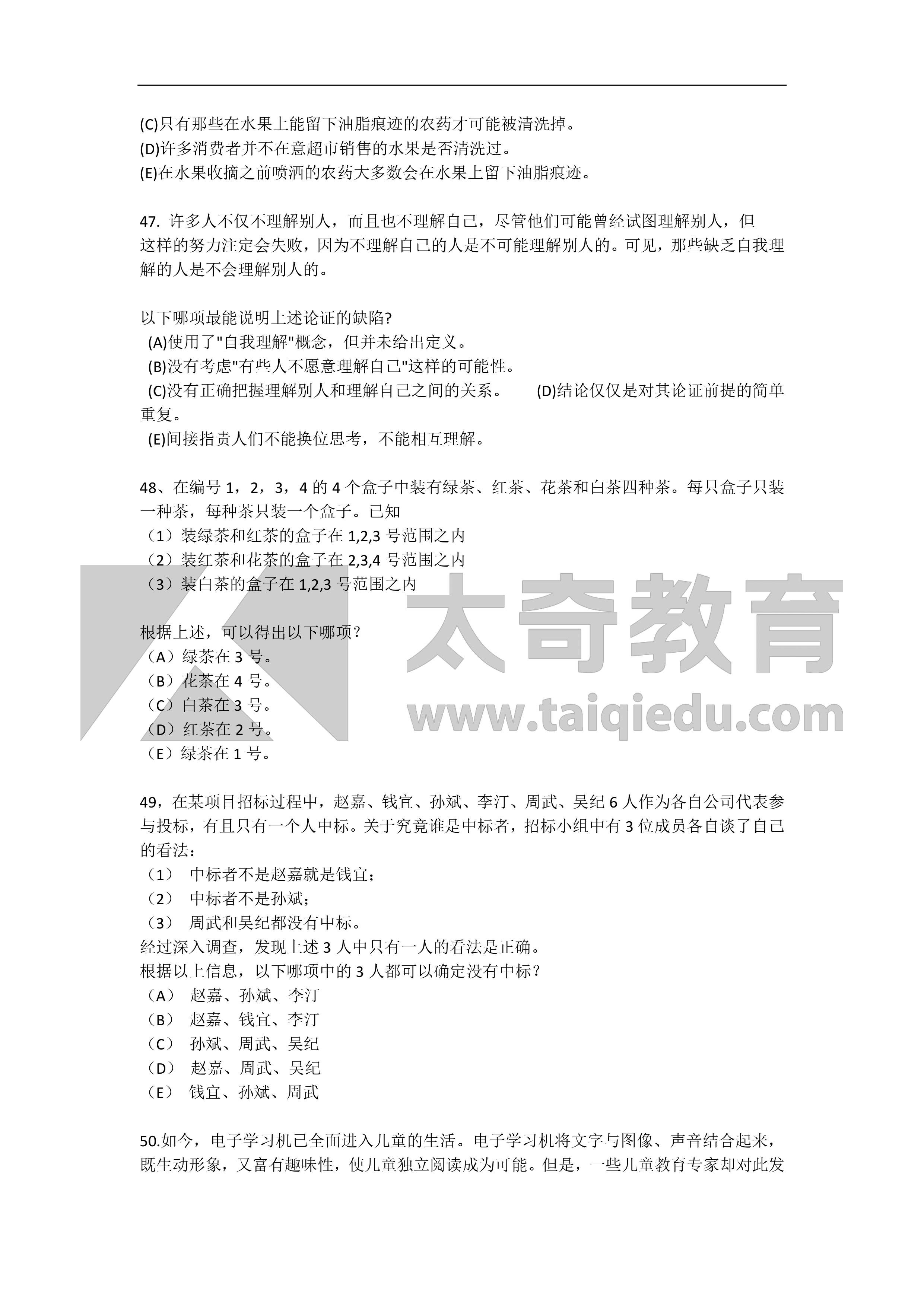2016MBA管理類聯(lián)考邏輯真題(7)