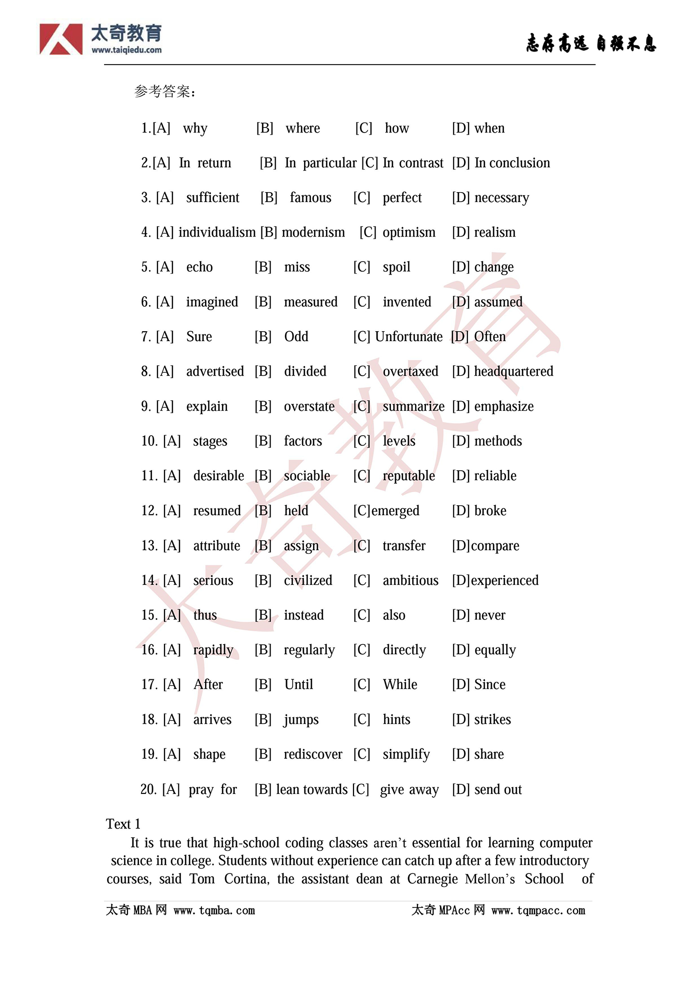 2016MBA管理類(lèi)聯(lián)考英語(yǔ)(二)真題完整版(2)
