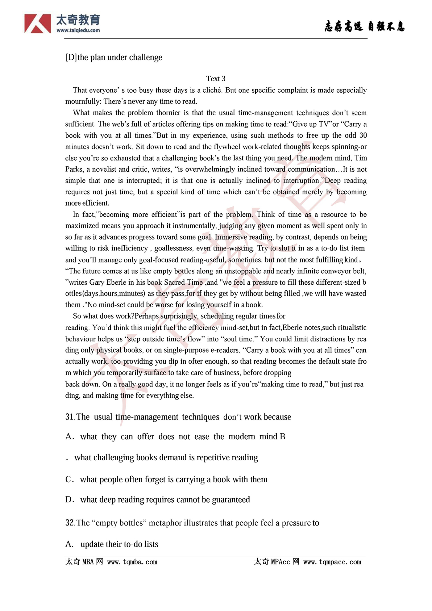2016MBA管理類聯(lián)考英語(二)真題完整版(6)