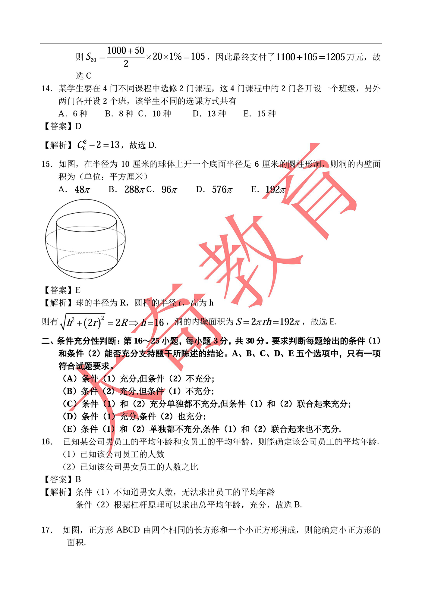 2016管理類(lèi)聯(lián)考數(shù)學(xué)真題完整解析(太奇官方版)(5)