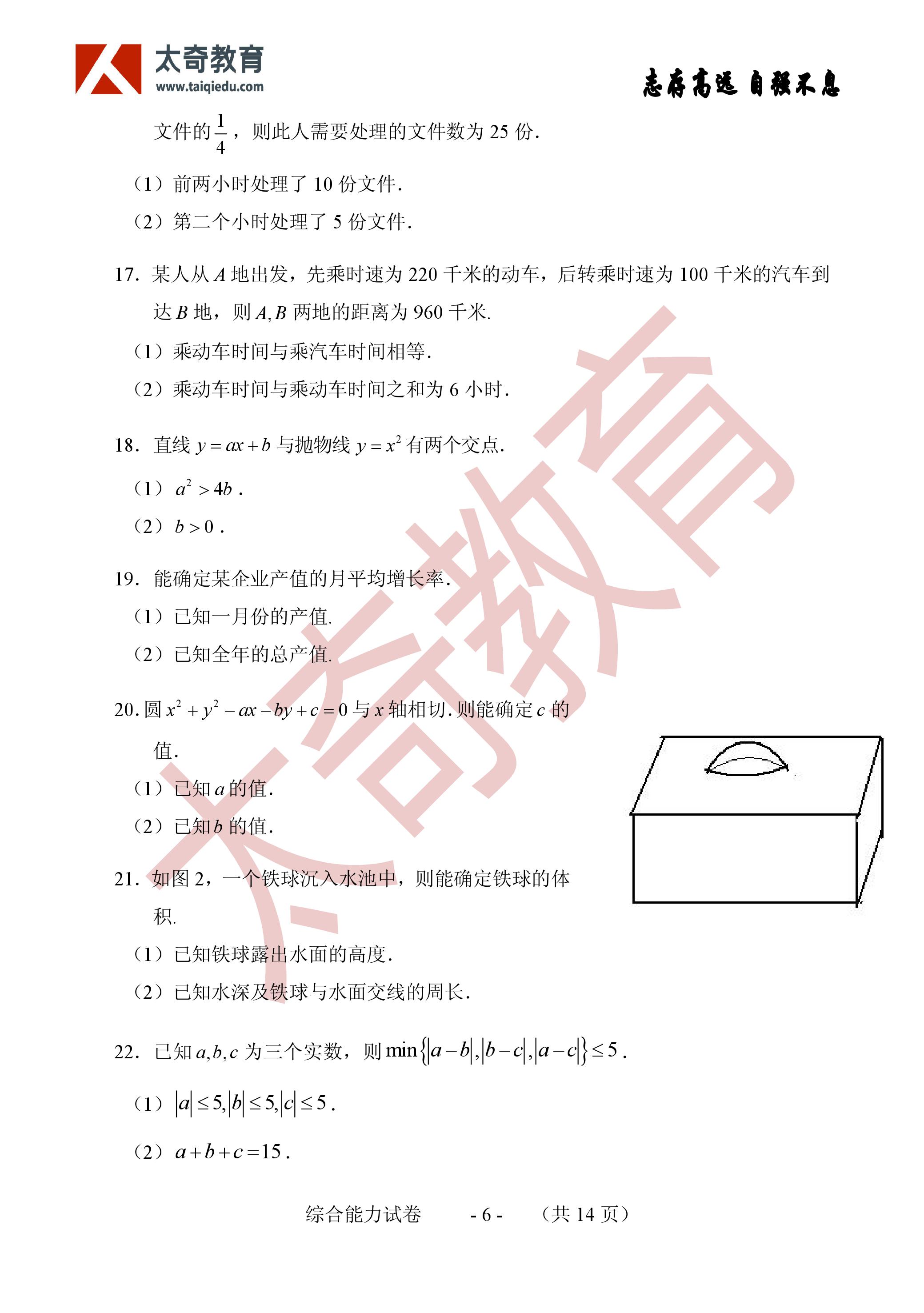 2017年MBA聯(lián)考數(shù)學(xué)真題參考答案:條件判斷(2)