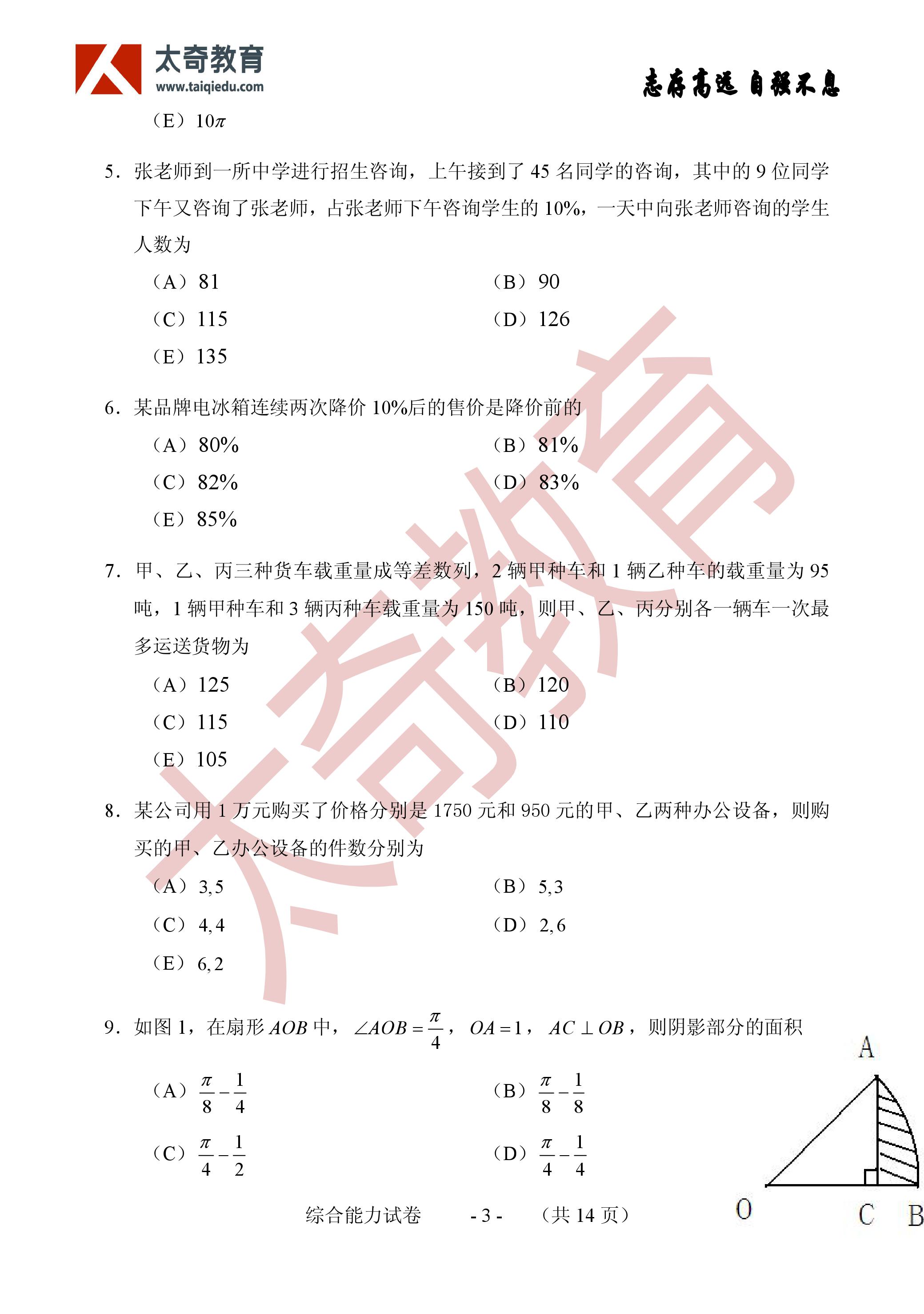2017年MBA聯考數學真題參考答案:問題求解(2)