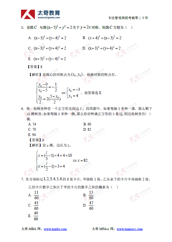 2019年MBA/MPAcc管理類聯(lián)考數(shù)學(xué)真題及答案(2)