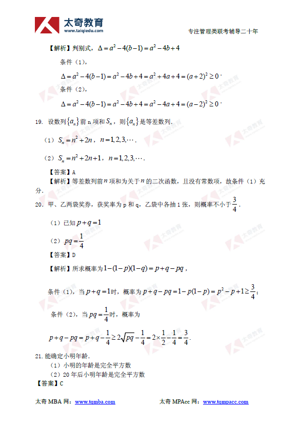 2019年MBA/MPAcc管理類聯(lián)考數(shù)學(xué)真題及答案(7)