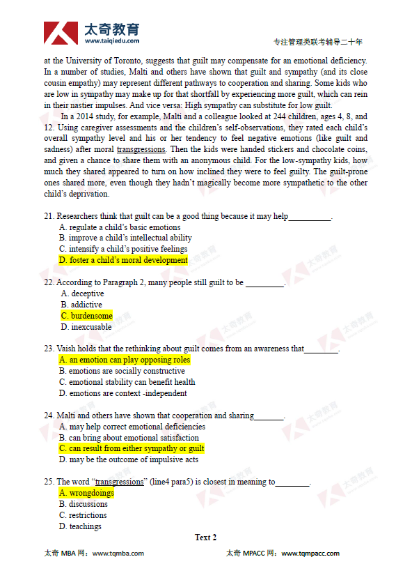 2019年管理類聯考MBA英語二真題及參考答案(3)