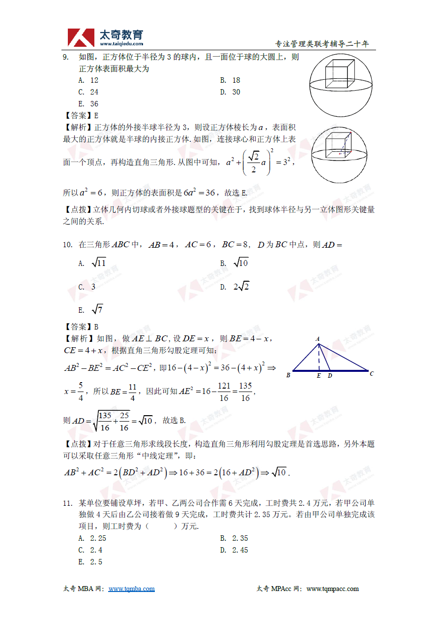 2019年管理類聯(lián)考數(shù)學真題+解析(太奇官方版)(4)