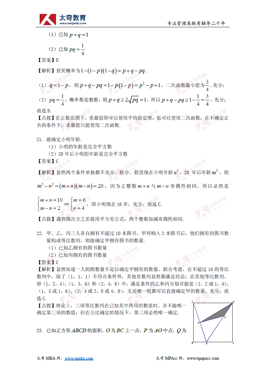 2019年管理類(lèi)聯(lián)考數(shù)學(xué)真題+解析(太奇官方版)(8)
