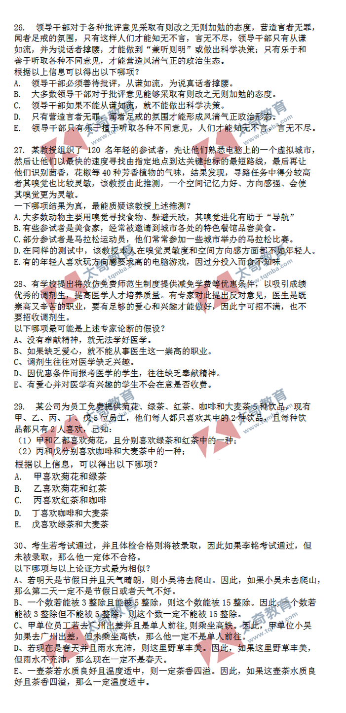 2020年MBA/MEM管理類聯(lián)考邏輯真題