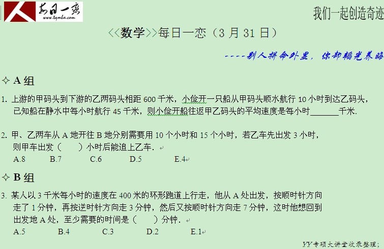 【太奇MBA 2014年3月31日】MBA數(shù)學(xué)每日一練