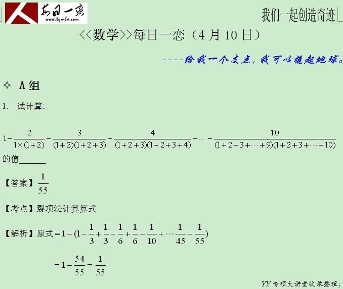 【太奇MBA 2014年4月10日】 MBA數學每日一練