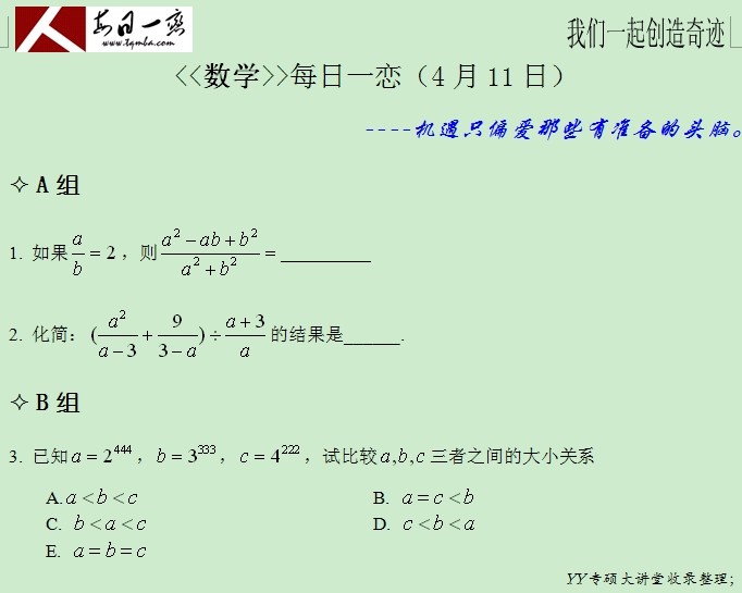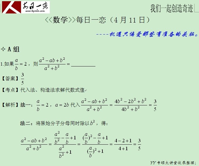 【太奇MBA 2014年4月11日】 MBA數(shù)學(xué)每日一練