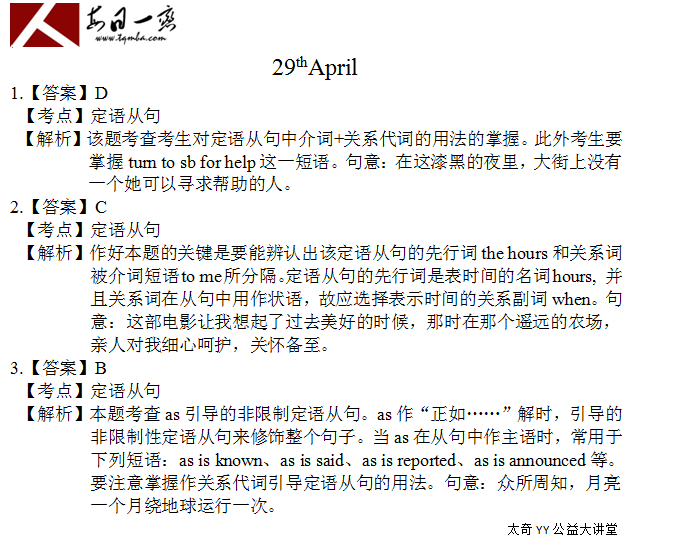 【太奇MBA 2014年4月29日】 MBA英語(yǔ)每日一練