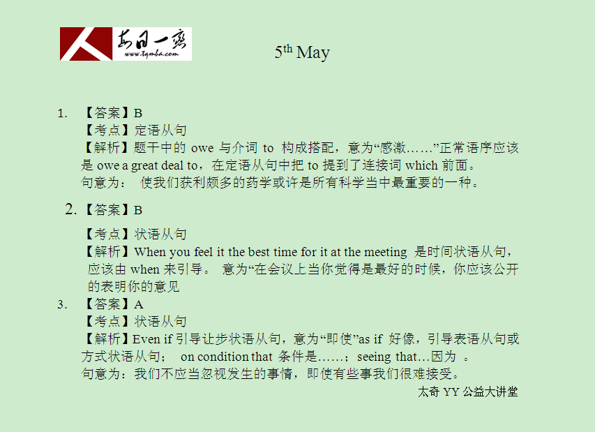 【太奇MBA 2014年5月5日】 MBA英語(yǔ)每日一練