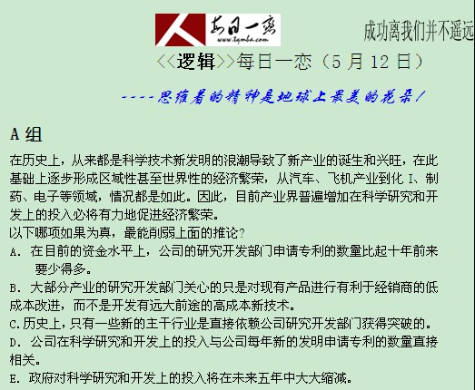 【太奇MBA 2014年5月12日】 MBA邏輯每日一練