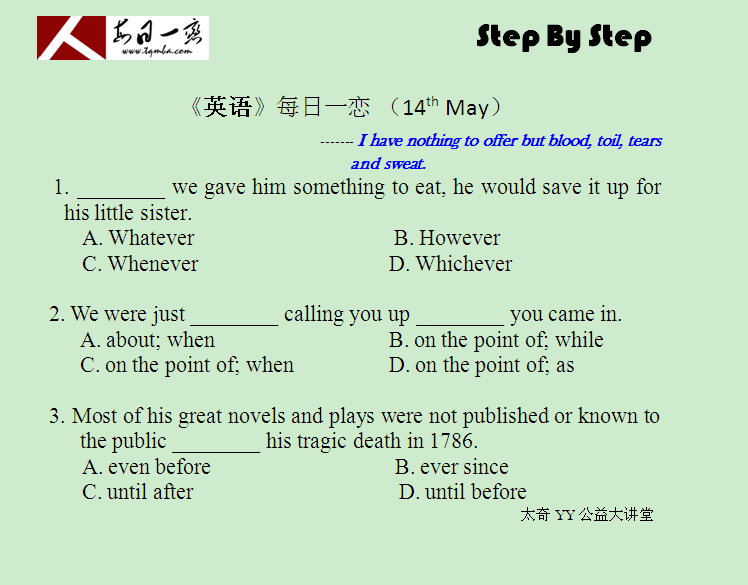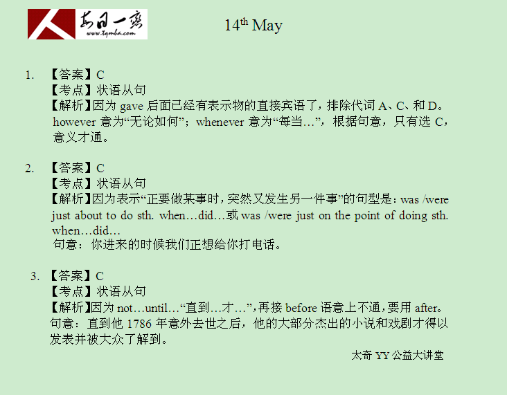 【太奇MBA 2014年5月14日】 MBA英語每日一練