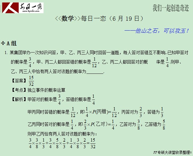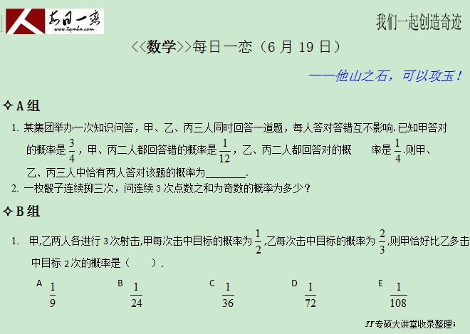【太奇MBA 2014年6月19日】 MBA數(shù)學(xué)每日一練