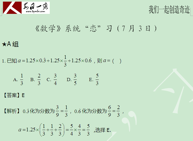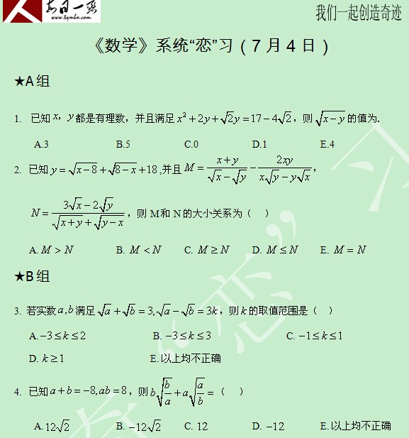 【太奇MBA 2014年7月4日】 MBA數(shù)學(xué)每日一練