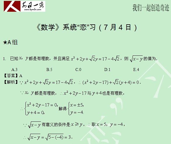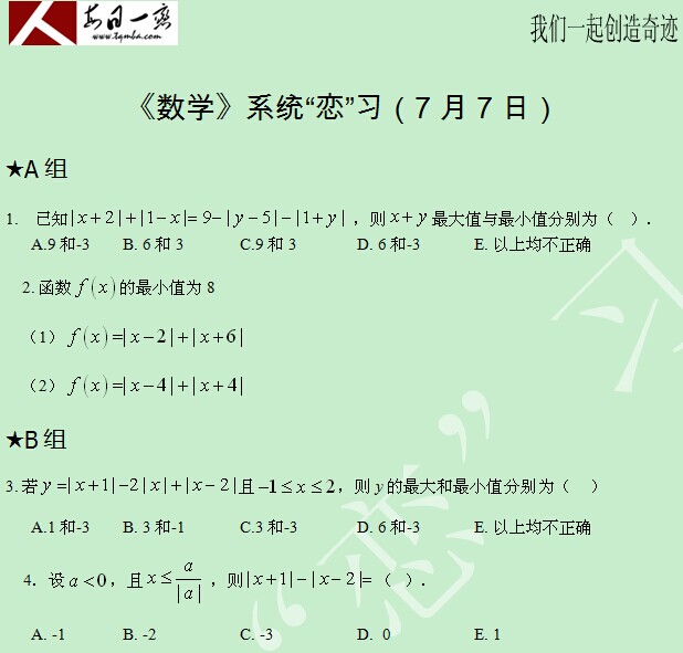 【太奇MBA 2014年7月7日】 MBA數(shù)學(xué)每日一練