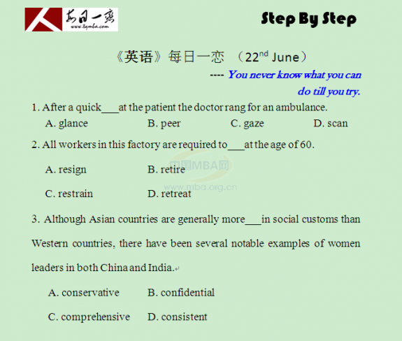 【太奇MBA 2015年6月22日】MBA英語(yǔ)每日一練