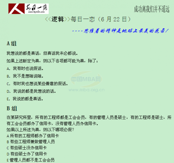 【太奇MBA 2015年6月22日】MBA邏輯每日一練