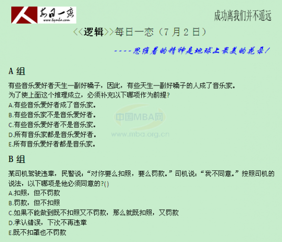 【太奇MBA 2015年7月1日】MBA數(shù)學(xué)每日一練