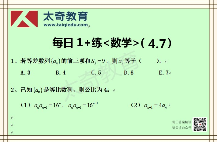 太奇MBA管理類聯(lián)考數(shù)學每日一練 4-7