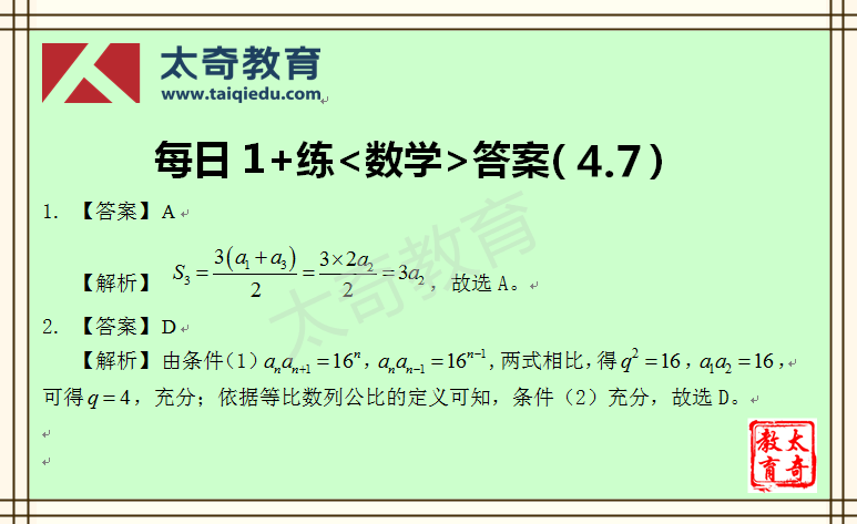 太奇MBA管理類聯(lián)考數(shù)學每日一練 3-31