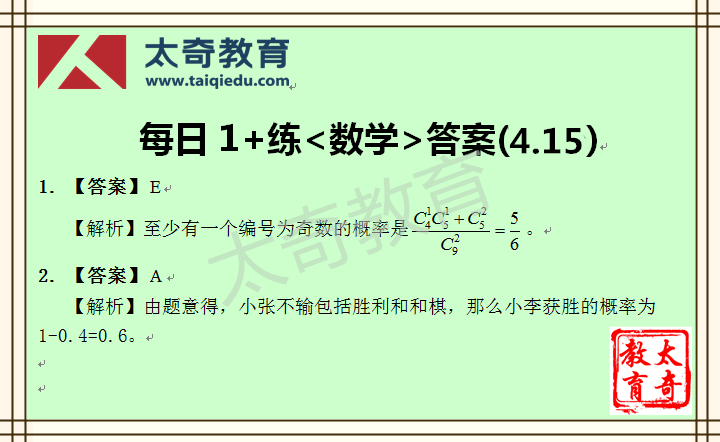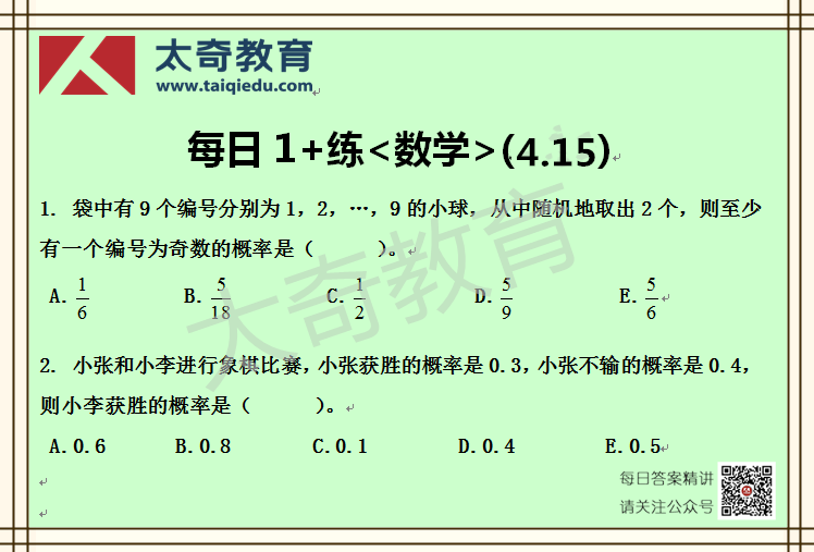 太奇MBA管理類聯(lián)考數(shù)學(xué)每日一練 4-15