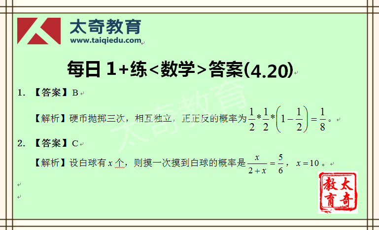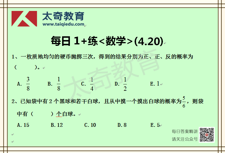 太奇MBA管理類(lèi)聯(lián)考數(shù)學(xué)每日一練 4-20