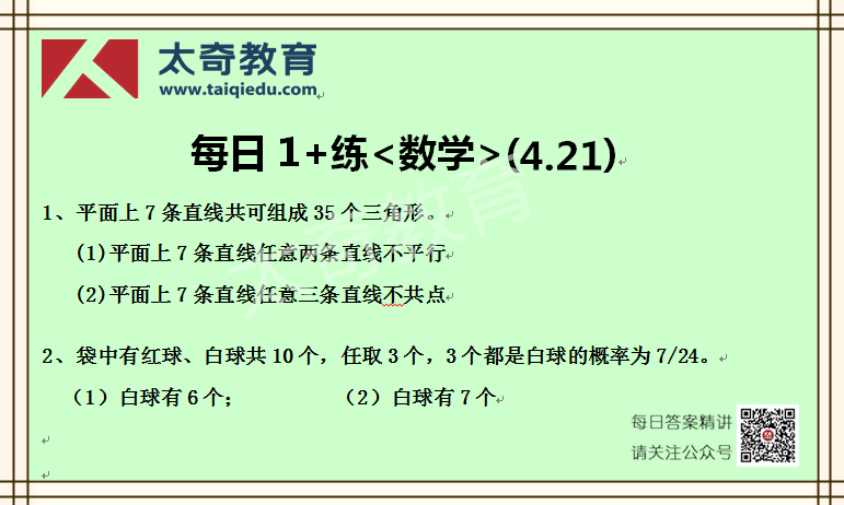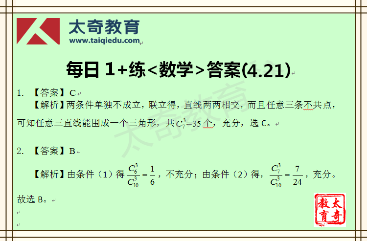太奇MBA管理類(lèi)聯(lián)考數(shù)學(xué)每日一練 4-21