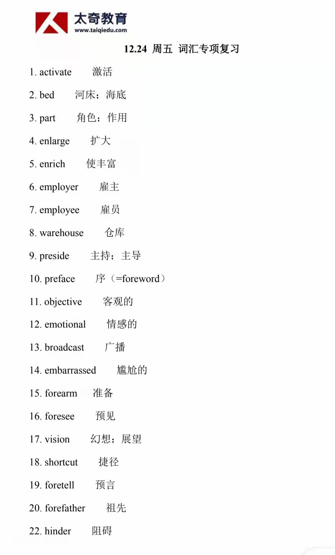 12月24日詞匯專項(xiàng)復(fù)習(xí)