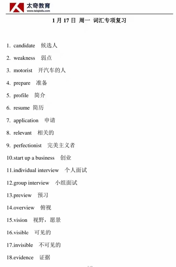 1月17日詞匯專項(xiàng)練習(xí)