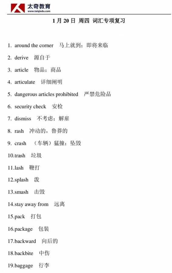 1月20日詞匯專項練習(xí)