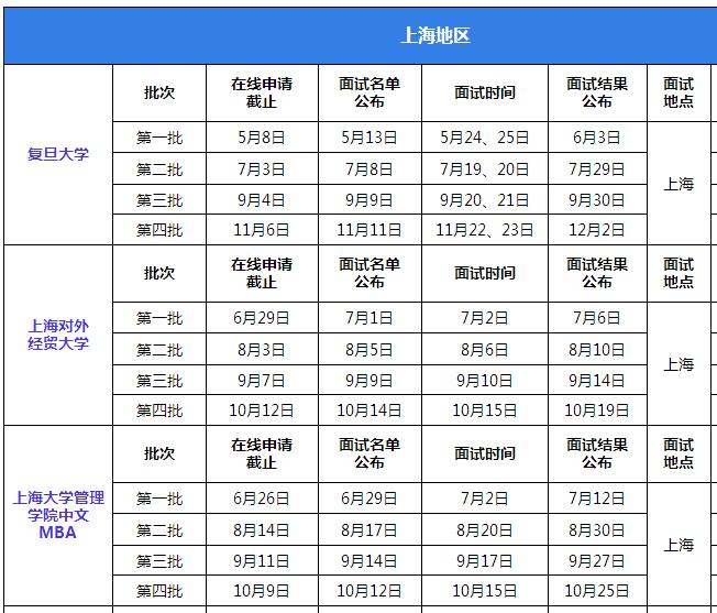 上海地區(qū)院校2017年MBA提前面試安排