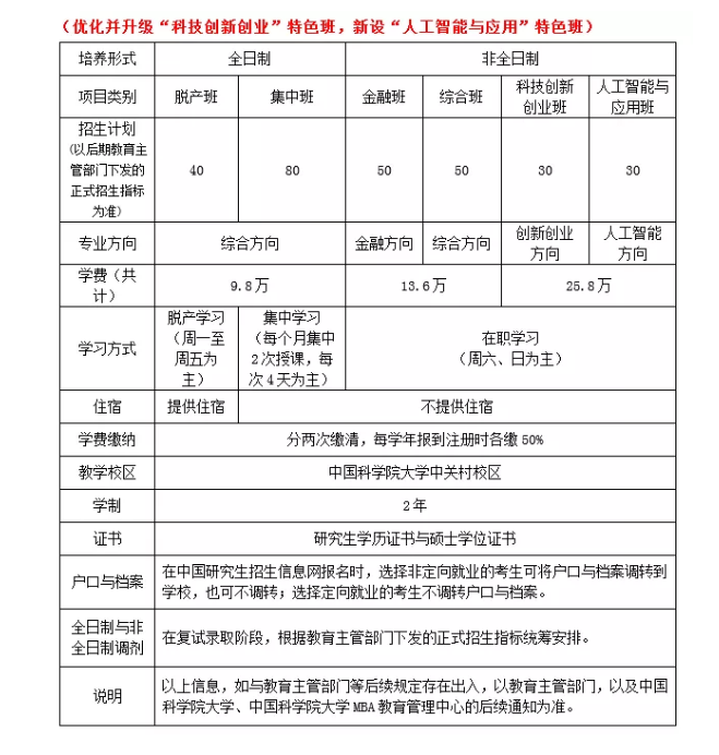 中國科學(xué)院大學(xué)2020年MBA計劃招生類別