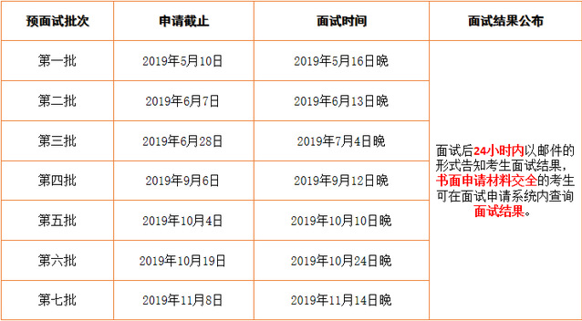 面試安排批次依照考生遞交書面材料的順序先到者先評(píng)估,先安排預(yù)面試。預(yù)面試內(nèi)容:綜合能力面試(個(gè)面)、英語能力測試(6到8人一組面試)。面試后我校會(huì)在系統(tǒng)中告知考生的面試成績,即錄取分?jǐn)?shù)線類別(A線B線C線)。報(bào)考我校一志愿的考生成績兩年有效,次年可繼續(xù)申請(qǐng)。