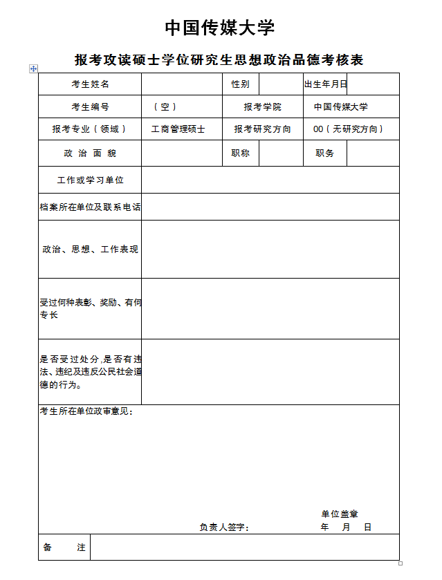 報考攻讀碩士學(xué)位研究生思想政治品德考核表