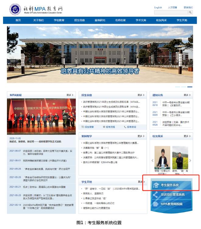 1.考生請(qǐng)登陸社科MPA教育中心網(wǎng)站(網(wǎng)址:www.cassmpa.cn)首頁右下角的考生服務(wù)系統(tǒng)(具體位置請(qǐng)見圖),按照要求注冊(cè)、填寫并提交《提前面試考生信息表》。