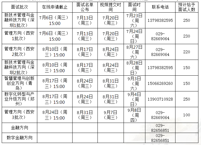 金融方向及數(shù)字金融方向面試時(shí)間另行通知或者詳見(jiàn)經(jīng)金學(xué)院網(wǎng)站通知(http://sef.xjtu.edu.cn/index.htm)。