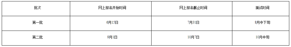 預計進行2次提前批面試,具體安排見表1(具體報名時間段,面試時間詳見每一批次面試前發(fā)布的具體通知)