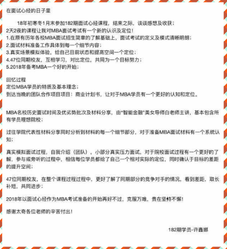 太奇2019年MBA面試集訓(182期)圓滿結營